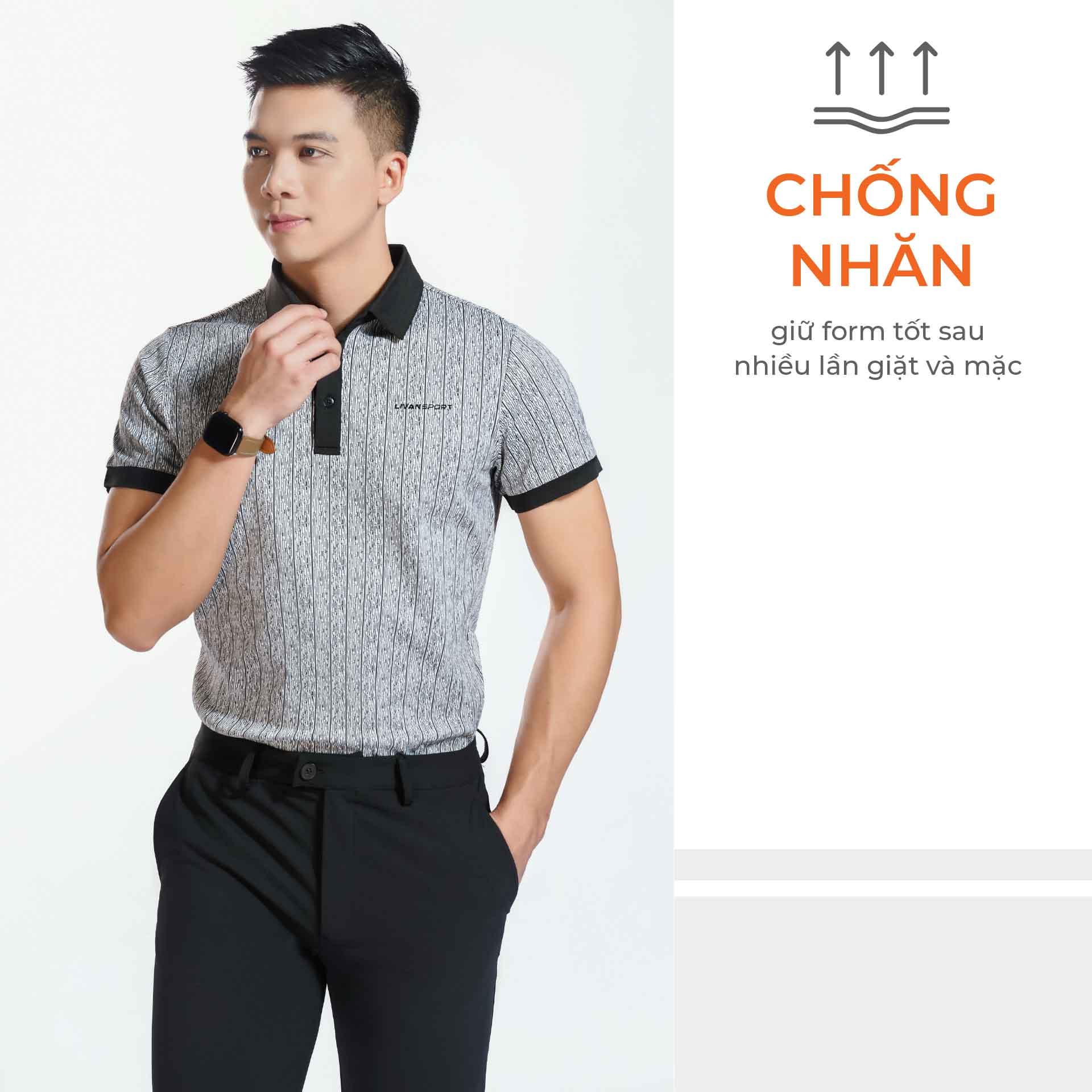 Công nghệ chống nhăn, giữ form chuẩn: Áo được xử lý bằng công nghệ chống nhăn, chống bai xù, giúp giữ phom dáng bền đẹp sau nhiều lần giặt mà không cần ủi nhiều.