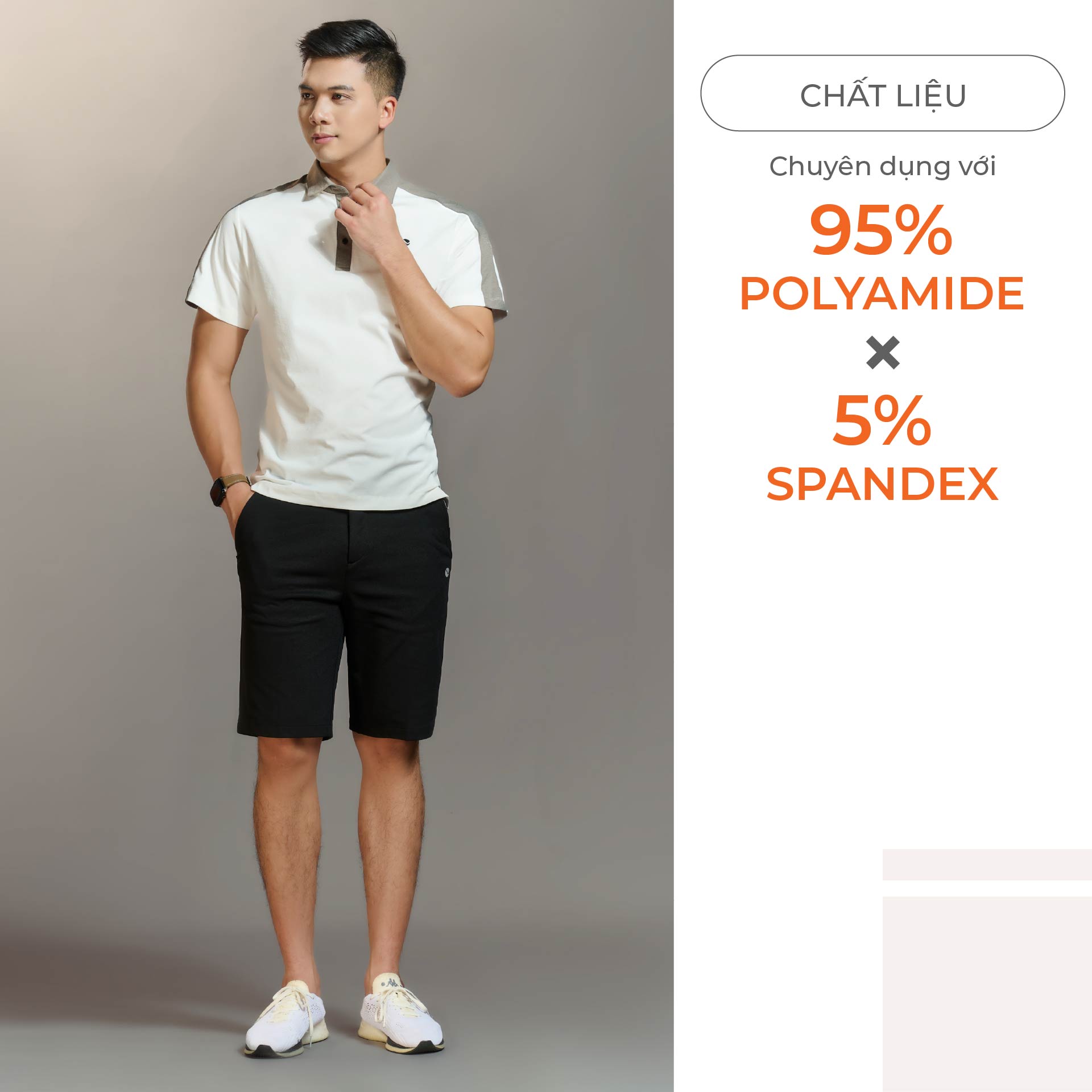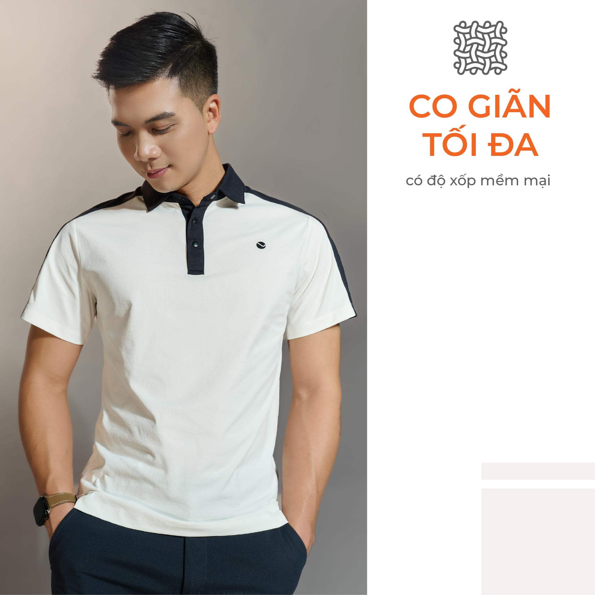 Thoải mái, dễ chịu – Chất liệu vải 95% polyeste & 5% Spandex giúp áo polo mềm mại, thấm hút mồ hôi tốt.