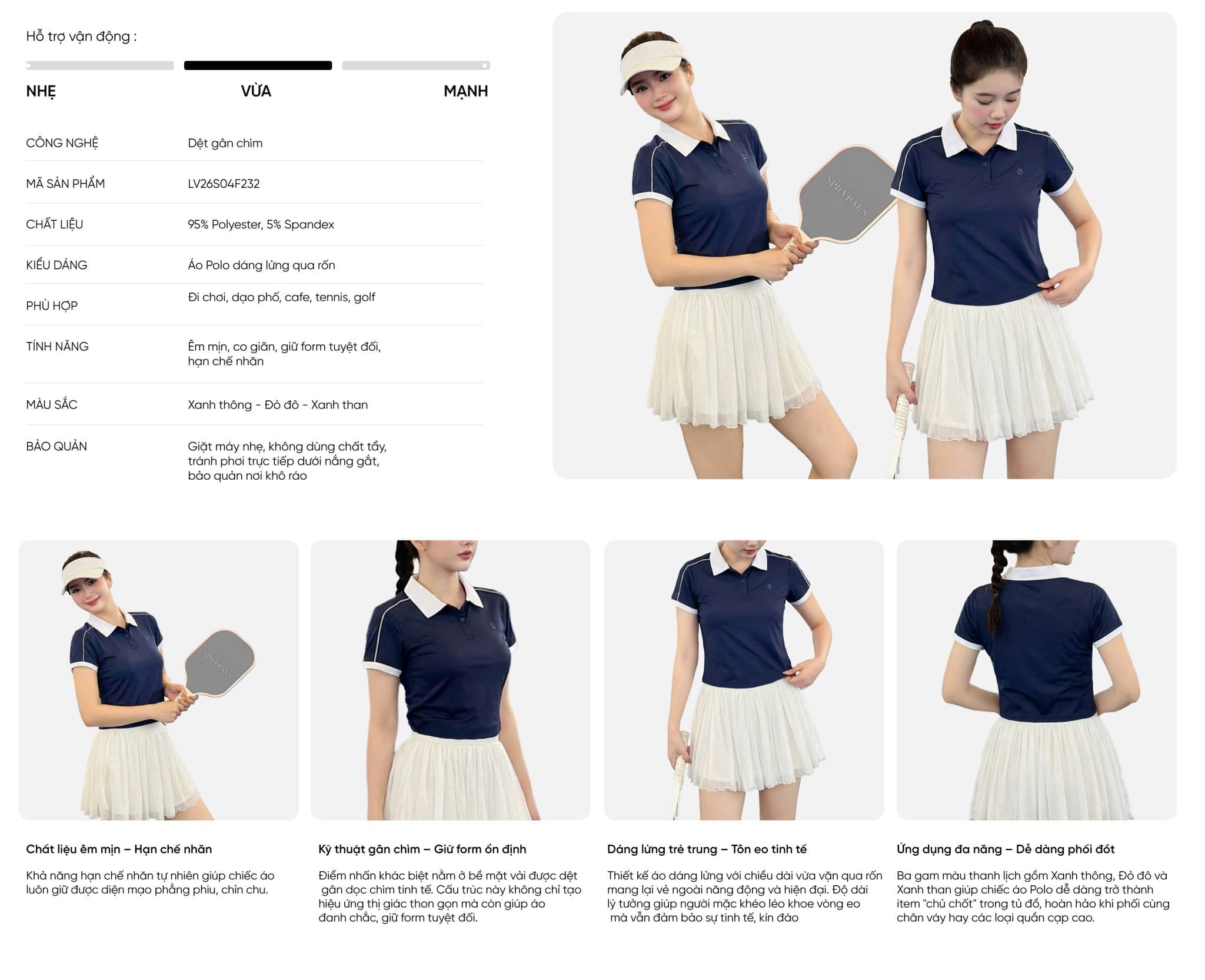 Áo Polo Nữ LV26S04F232 là sản phẩm độc quyền được sản xuất, phân phối và bày bán trên toàn hệ thống cửa hàng của Livan Sport, cũng như các hệ thống các trang thương mại điện tử: Website, Shopee, Facebook... chính hãng.
