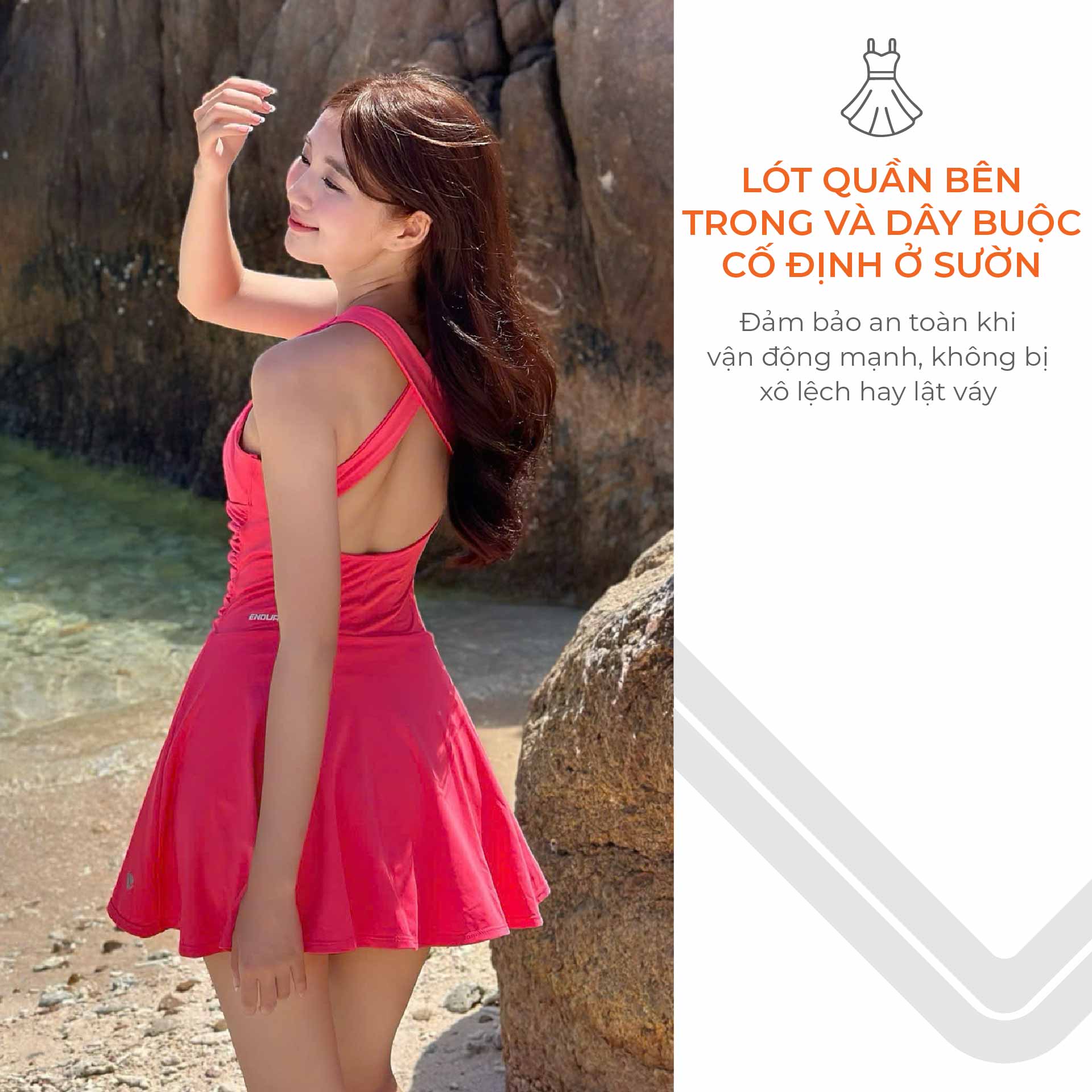 Lót quần bên trong và dây buộc cố định ở sườn: Đảm bảo an toàn khi vận động mạnh, không bị xô lệch hay lật váy.