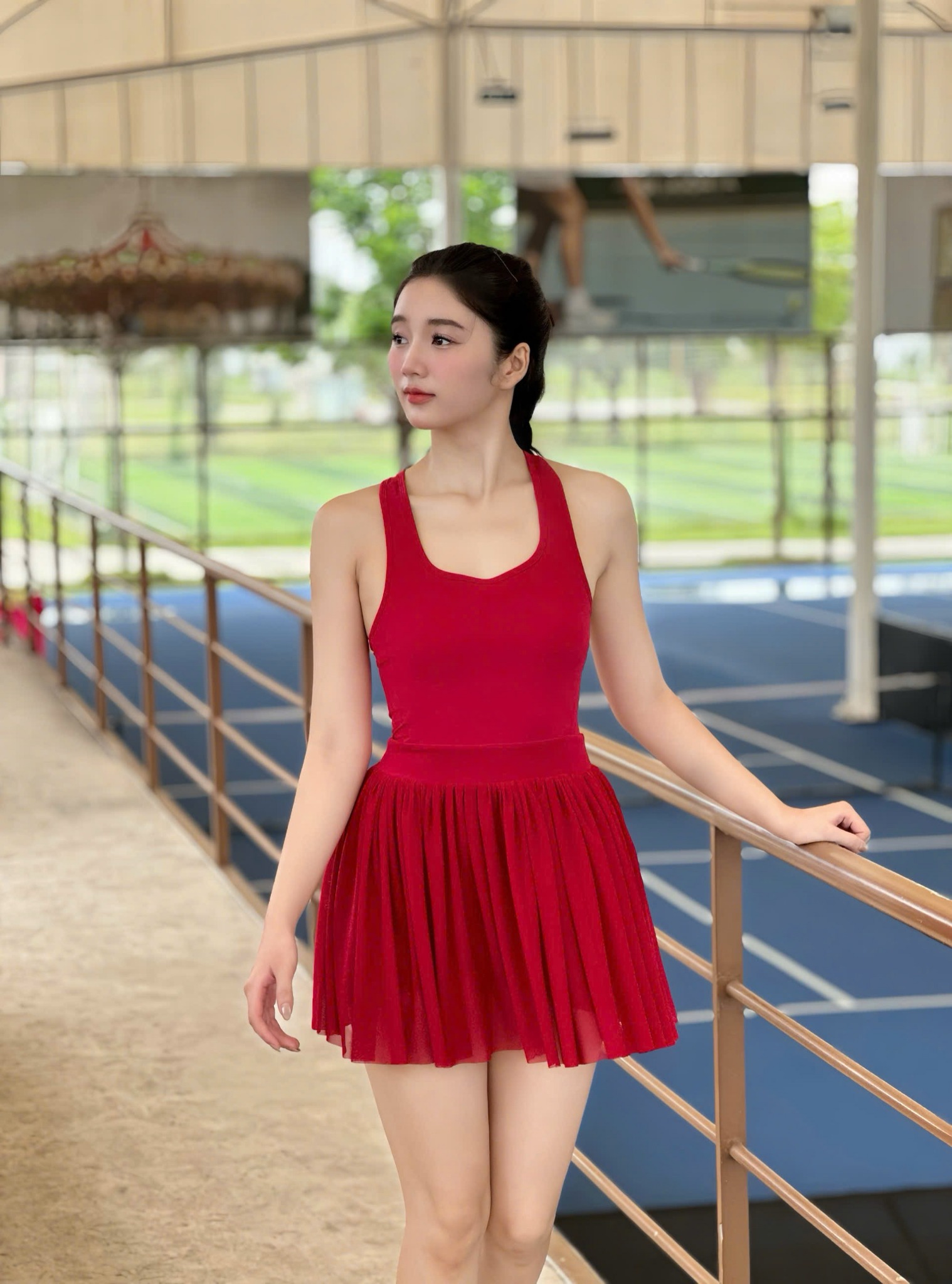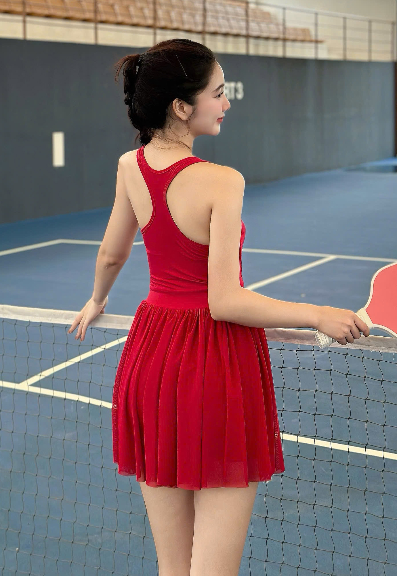 Phần chân váy xếp ly mềm mại dáng váy suông nhẹ, không quá ôm sát, vừa giúp bạn thoải mái khi thi đấu, vừa mang lại vẻ năng động và khỏe khoắn khi xuất hiện trên sân tập.